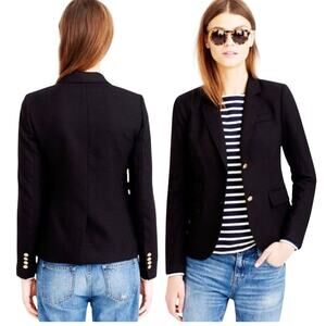 J Crew Schoolboy Blazer Jacket Wool Blend Gold Crest Buttons Black