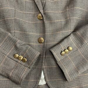 J. Crew Schoolboy Blazer Jacket Women’s Wool Blend Houndstooth Plaid Gold Buttons