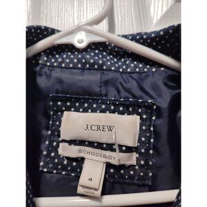 J. Crew Schoolboy Blazer -Style #40203 -Size: 4 -Color: Indigo Dot (navy / white) -Button-front closure -Long sleeves with button cuffs -Chest pocket -Flap pockets (one sewn shut) -Notch collar -Lined -Shell: 100% cotton -Lining: 100% polyester -Machine washable -Excellent pre-owned condition