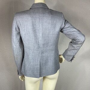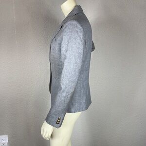 100% wool J. Crew schoolboy blazer. Heathered gray with ornate brass buttons.