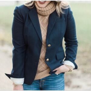 Nice gently used wool blazer from J. Crew sz 2, please note there is a botton missing, see pictures for details
