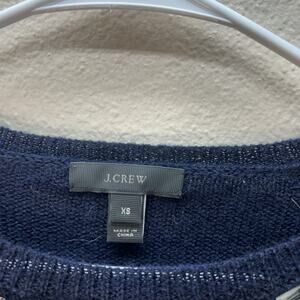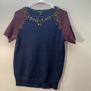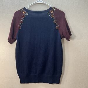 J. Crew Scoop Neck Wool Alpaca Blend Knit Sweater Top Embellished Beaded Y2K XS navy blue burgundy statement necklace style super soft quiet luxury Ivy League