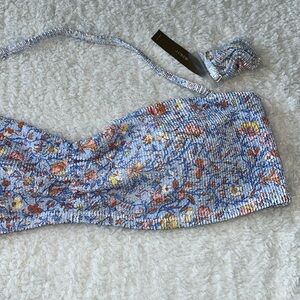 J. Crew Scrunch Smocked Paisley Floral Sweetheart Bikini Top Blue Afternoon