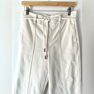 J. Crew Seamed Straight Leg Jean In All Day Stretch With Rope Tie Waist Cream Colored Cotton Pants