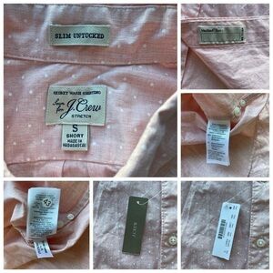 J. Crew Secret Wash Slim Untucked Shirt Pink Small Short Polka Dot NWT Barbie
