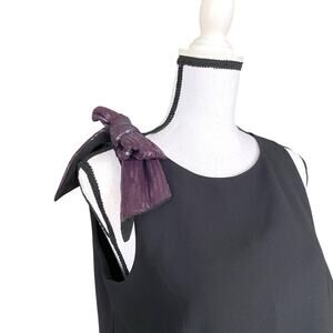 J Crew Simple Black Shell Top with an Oversized Purple Sequin Bow Accent at the Shoulder.