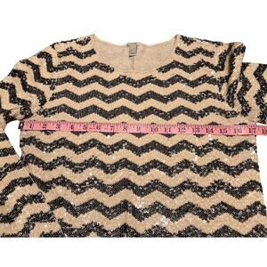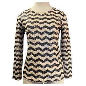 J. Crew Sequin Chevron Stripe Sweater Size S Cream Black Sparkle Festive Preppy