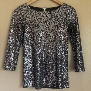 J. Crew Sequin Dark Gray Top Blouse XXS Oversized Holiday Glam NYE Party