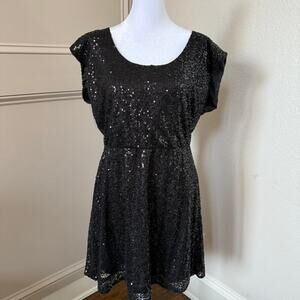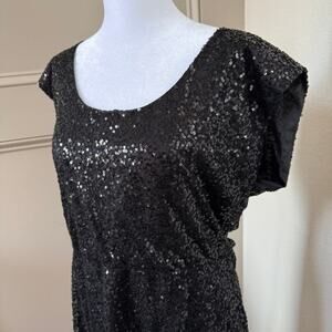 J Crew Sequin Dress Black Elastic Waist Size 6