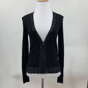 J. Crew Sequin Full Zip Cardigan Womens XS Extra Small Black Merino Wool *READ