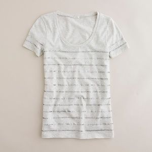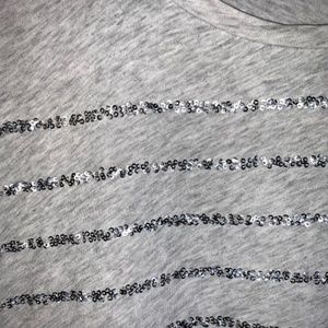 Sequin stripes go all the way around tee, even onto back. Also sleeves.