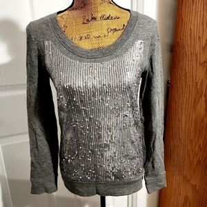 J. Crew Sequin Sweatshirt Sweater Top Grey Women's XXS 100% Cotton Sparkle