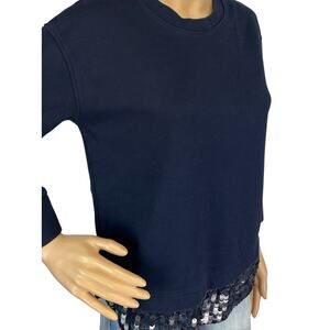 J. Crew Sequin Trim Sweatshirt Navy Blue B7027 Size XS