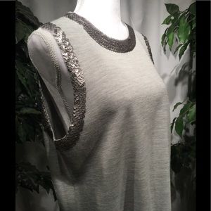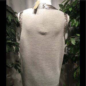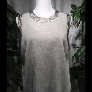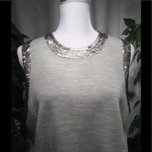 Sequined, sleeveless, light sweater top. Very pretty and fun to wear.