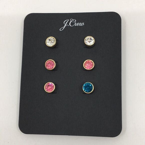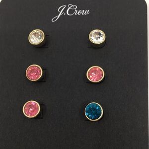 J Crew Set of three stud rhinestone earrings new on card