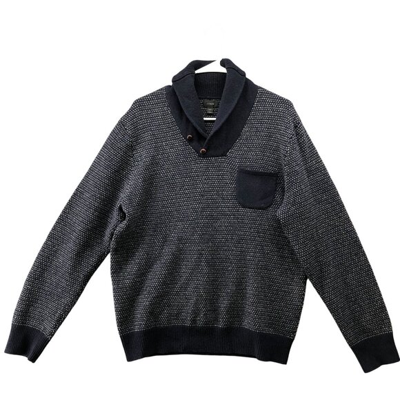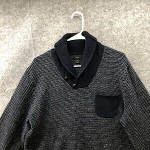 J. Crew Shawl Collar Wool Sweater Mens M Navy Blue Pullover Birdseye Lambswool