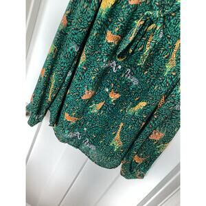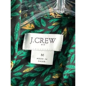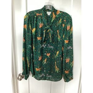 J. Crew Sheer Animals Drapey Bow Tie Jungle Safari Cat Blouse Top Green Medium