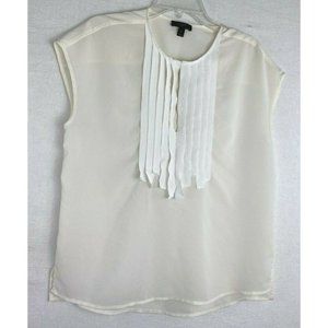 J Crew Sheer Ivory & White Sleeveless Career Blouse Ruffle Front Womens Size 2