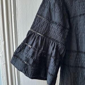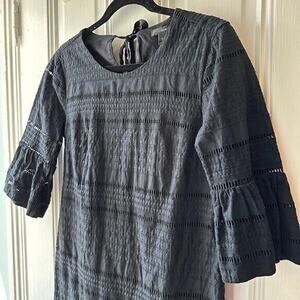 J Crew Shift Dress Womens 2 Black Bell Sleeve Cotton Lined Boho Tie Back