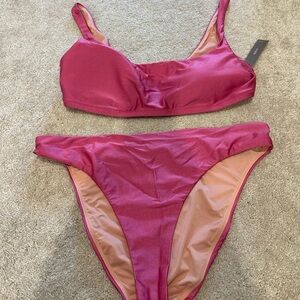 J. Crew Shiny squareneck bikini top & high waisted bikini bottom swimsuit set XL