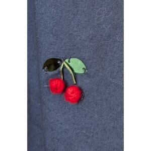 J Crew Shirt 8 Slim Button Down Shirt Navy Blue Red 3D Cherry Pom Pom Embroidery