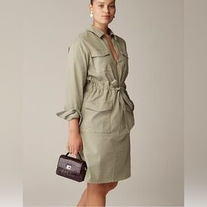 J. Crew Shirt Dress Cinched-waist Utility chino green style CD356 size 8