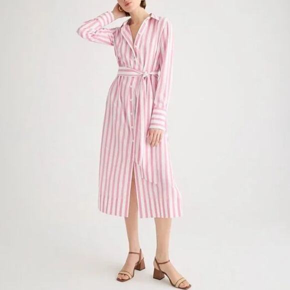J. Crew Long-Sleeve ButtonUp Shirtdress Pink Striped Poplin