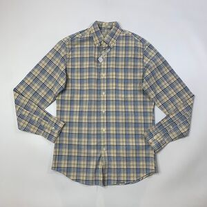 J Crew Shirt Men Extra Small Cream Blue SLIM Fit Button Down Long Sleeve Stretch