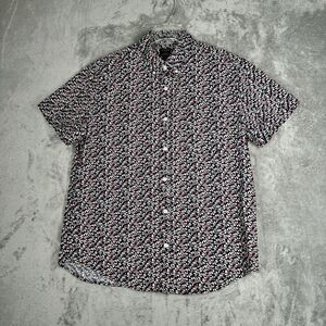 J. Crew Shirt Men Large Black Red Floral Flower Button Up Casual Workwear Preppy