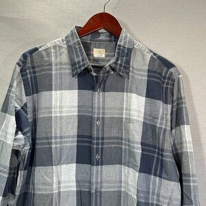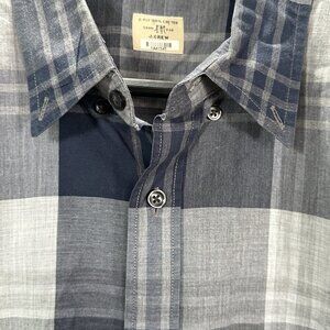 J Crew Shirt Men Large Gray White Plaid 2 Ply Cotton Button Down Long Sleeve