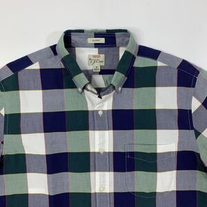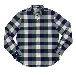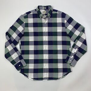 J Crew Shirt Men M Medium Navy Green Classic All Cotton Oxford Button Down Plaid