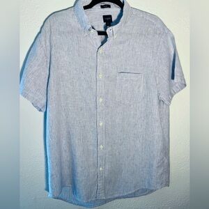 J. Crew Shirt Men XL Blue Striped Linen Slim Fit Casual Preppy Shirt