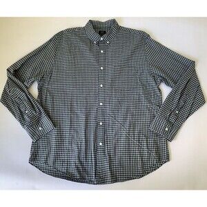 J Crew Shirt Men XL Teal Gray Gingham Check Cotton Button Up Preppy Career Norm