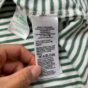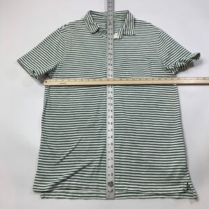 J Crew Shirt Mens L Basil Green White Striped Cotton Slub Yarns Side Vent Tennis