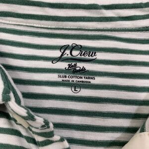 J CREW SHIRT MENS L BASIL GREEN WHITE STRIPED COTTON SLUB YARNS SIDE VENT TENNIS