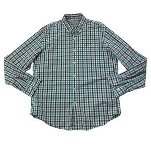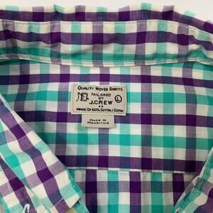 J CREW SHIRT MENS L LARGE PURPLE TEAL COTTON WOVEN GINGHAM PLAID BUTTON DOWN