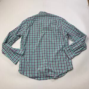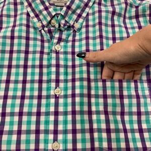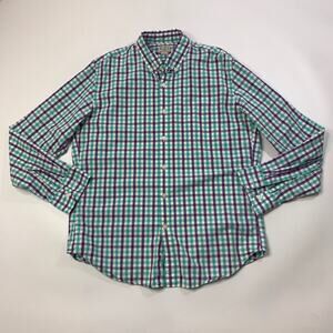 J Crew Shirt Mens L Large Purple Teal Cotton Woven Gingham Plaid Button Down