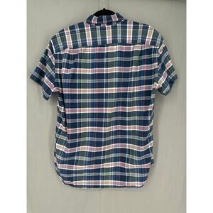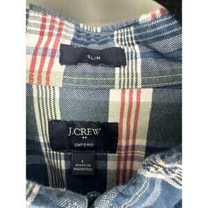 J Crew Shirt Mens Large Blue Plaid Oxford Slim Fit Button Cotton Short Sleeve