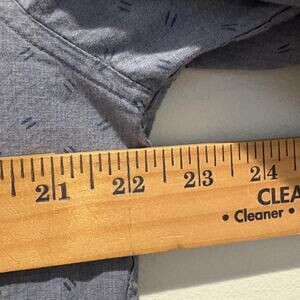 Features: Lightweight blue fabric with subtle mini pattern, button-down collar, chest pocket, white buttons