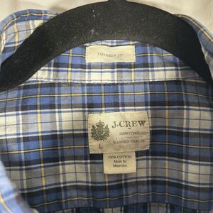 J Crew Shirt Men's Large Blue White Plaid Button Up Long Sleeve Tailored