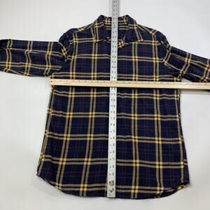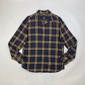 J Crew Shirt Mens Large Navy Daffodil Plaid Flannel Cotton Button Up Long Sleeve