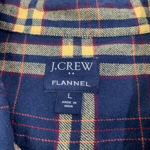 J CREW SHIRT MENS LARGE NAVY DAFFODIL PLAID FLANNEL COTTON BUTTON UP LONG SLEEVE