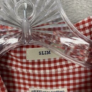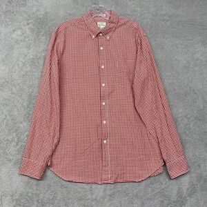 J Crew Shirt Mens Large Red Check Plaid Button Down Slim Lightweight Cotton