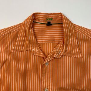 J Crew Shirt Mens M Medium Orange Cream Button Up Striped Long Sleeve Shirttail