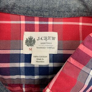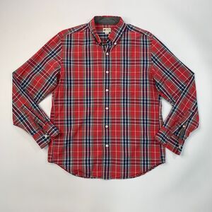 J Crew Shirt Mens M Medium Red Washed Tartan Plaid Button Down Cotton Pocket