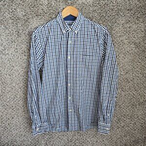 J Crew Shirt Mens Medium Blue Check Button Down Indigo Slim Fit Long Casual