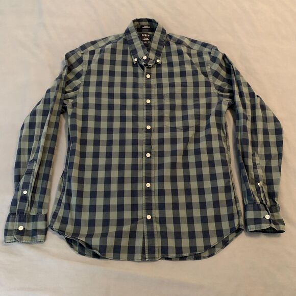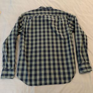 J Crew Shirt Mens Medium Blue Green Flex Washed Slim Untucked Button Down Plaid