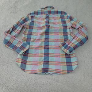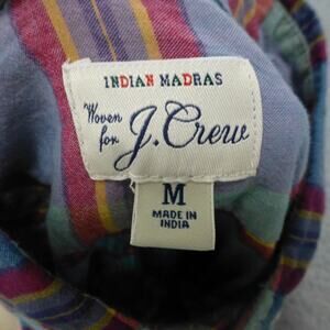 J Crew Shirt Mens Medium Button Up Indian Madras Plaid Blue Classic Cotton