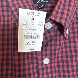 J Crew Shirt Mens S Red Blue Check Slim Flex Wash Button Down Long Sleeves NWT - NEW WITH TAGS MSRP $59
