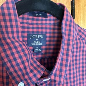 J Crew Shirt Mens S Red Blue Check Slim Flex Wash Button Down Long Sleeves NWT